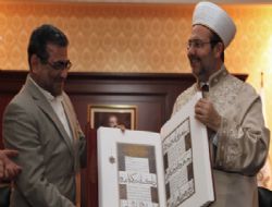 Diyanet İşleri Başkan Yardımcısı Prof. Dr. Mehmet Emin Özafşar ve Dış İlişkiler Genel Müdürü Prof. Dr. Mehmet Paçacı’nın da eşlik ettiği ziyaretin sonunda Diyanet İşleri Başkanı Görmez, İranlı Bakan’a Kur’an-ı Kerim hediye etti.