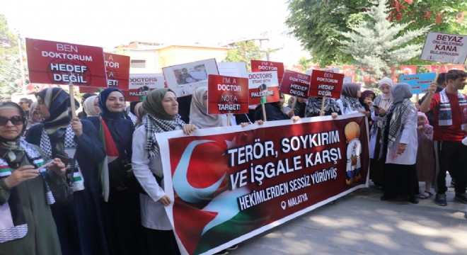 Malatya'da bir araya gelen vatandaşlar, "Hekimler ve sağlık çalışanları terör soykırım ve işgale karşı yürüyor" sloganıyla İsrail'in Gazze'de ve Refah'ta yaptığı soykırıma tepki gösterdi.