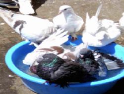 Aşırı sıcaklarda kuşların da banyo yapmaya ihtiyaç duyduklarını ifade eden Hamza Kaplan, "Sıcak havalarda güvercinler tüy döküyor. Sıcaklardan dolayı uçmuyorlar. Onun için böyle aşırı sıcak havalarda kuşları leğende banyo yaptırıyoruz. Leğeni ortaya bırak içerisine su doldur sen kenara çık kuşlar teker teker gelip o suyun içerisine girerek kendilerini serinletir" dedi.