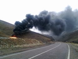 Pasinler Belediyesinin kullandığı çöp alanında lastiklerin toplanması sonucu yakılan ateşten çıkan duman ana yolda olası trafiği olumsuz yönde etkiledi.