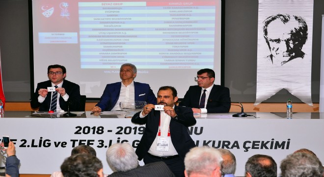 TFF 2. Lig’de yer alan takımların 2018-2019 sezonunda mücadele edeceği gruplar belli oldu. Sarıyer Orhan Saka Amatörler Evi’nde gerçekleştirilen kura çekimine Türkiye Futbol Federasyonu İcra Kurulu Üyesi ve İstanbul Amatör Spor Kulüpleri Federasyonu Genel Başkanı Ali Düşmez, Genel Sekreter Yardımcısı Özcan Şepik ve Maç Planlama Müdürü Besim Yalçın'ın yanı sıra takımların temsilcileri katıldı.