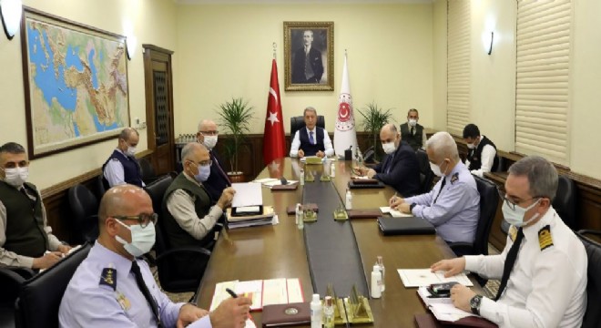 Savunma ve güvenlik konuları kapsamında Doğu Akdeniz'deki gelişmeler, terörle mücadele harekatları ve korona virüsle mücadelede alınan tedbirlerin de ele alındığı toplantıda talimat veren Bakan Akar, Türk Silahlı Kuvvetleri'nin yoğun bir dönemden geçtiğini belirtti. Terörle mücadele operasyonların karalılıkla devam ettiğini ifade eden Akar, görevlerini başarıyla yerine getiren tüm personeli kutlayarak, "İnşallah bundan sonra da aynı ciddiyet ve samimiyetle, diyalog ve koordinasyon içinde faaliyetleri yürütmek suretiyle bize verilen görevleri başaracağız" diye konuştu. Bakan Akar, Ege ve Doğu Akdeniz'deki gelişmelere ilişkin, "Kimsenin hakkında, hukukunda gözümüz yok. Biz iyi komşuluk ilişkilerinden, diyalogdan, problemlere siyasi çözümler bulunmasından yanayız" dedi. Bunu sonuna kadar desteklediklerini de vurgulayan Akar, "Her türlü görüşmeye 'evet' dedik. İstikşafi görüşmeler, güvenlik artırıcı önlemler, Sayın NATO Genel Sekreteri'nin, karşılıklı etkileşime meydan vermemeye yönelik yapılması gerekenlerin ele alındığı görüşmeler, bunların hepsine 'evet' dedik. Fakat bunlara rağmen gerekli karşılığı bulabildik mi? Maalesef bulamadık. Fakat bulmayı hala umut ediyoruz" değerlendirmesinde bulundu.