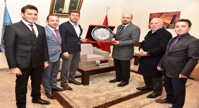 Türkiye Gençlik Vakfı (TÜGVA) Erzurum İl Başkanlığı’na getirilen Mustafa Kahveci, TÜGVA Yönetim Kurulu Üyesi Bilal Erdoğan’a plaket takdim etti.