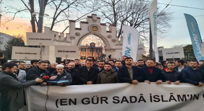 Türkiye Gençlik Vakfı (TÜGVA), Stockholm'de Kur’an-ı Kerim’in yakılmasını İsveç Konsolosluğu önünde protesto etti.