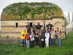 Kaymakamlık makamından ayrılan TÜRKSOY fotoğraf sanatçıları Ağrı Kültür Müdür Yardımcısı Hilal Aydın ve Şube Müdürü Necdet Ayhan'ın rehberliğinde Hamur ilçesindeki fotoğraf çekimlerine Mahmut Paşa Kümbeti'nden başladılar.