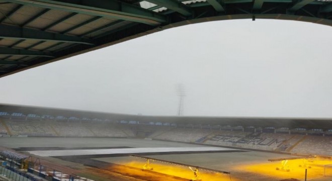 Bu arada Stat personeli de saha zeminin soğuktan etkilenmemesi ve müsabaka saatine kadar saha zeminin tazeliğini koruması için yoğun bir çalışma örneği sergiliyor.