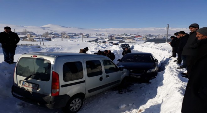 Tekman ilçesinde kar yağışı nedeniyle yolu göremeyen sürücüler kafa kafaya çapıştı. Kazada 5 kişi yaralandı. Kaza yapanların taziye ziyaretine gidenlerle ziyaretten dönen kişiler olduğu belirlendi.