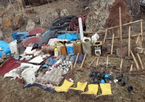 Tekman ilçesinde PKK'lı teröristlerin kullandığı içerisi yaklaşık 1 ton yaşam malzemesi dolu 4 sığınak imha edildi.