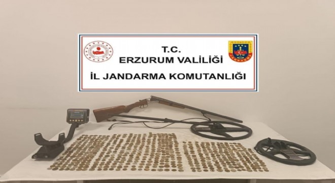 Erzurum İl Jandarma Komutanlığı ve Tekman İlçe Jandarma Komutanlığınca Tekman ilçesinde yapılan operasyonlarda 615 adet tarihi sikke, 1 adet dedektör ve 1 adet ruhsatsız av tüfeği ele geçirildi.