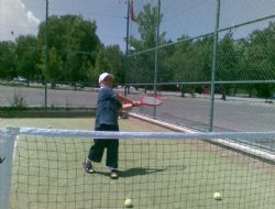 Erzurum Gençlik ve Spor İl Müdürlüğü Tenis Antrenörü Yıldırım Gündoğdu, teniste alt yapı oluşturmak için minik çocuklara yöneldi.