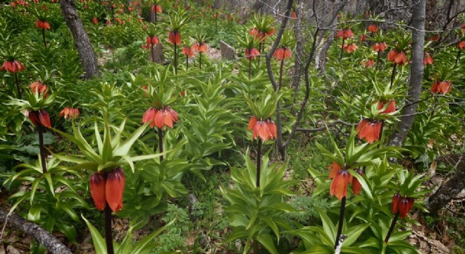 Bitlis'in Mutki ilçesinde baharın gelmesiyle birlikte açan ters laleler doğayı adeta renklendirdi.