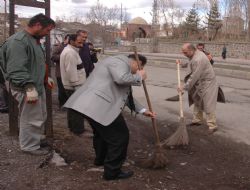Belediye mıntıkası dahilindeki mahalleleri tek tek gezerek incelemelerde bulunan Yakutiye Belediye Başkanı Ali Korkut, personelle birlikte eline aldığı süpürge ve kürekle çöp temizliği yaptı. Çevre temizliğine önem göstereceklerinin altına çizen Başkan Korkut, "Halkımızın daha sağlığa uygun bir ortamda kalması için Yakutiye ilçemizin genel bir çevre temizliğine ihtiyacı vardır." dedi.