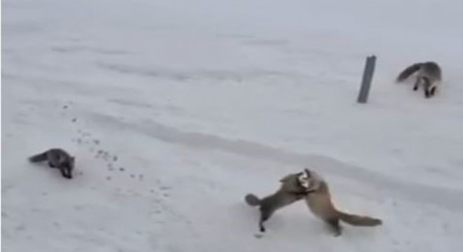 Karayolları personeli tarafından beslenen tilkiler, kendi aralarında ekmek kavgasına düştüler. Uzun bir süre kavga eden tilkiler daha sonra verilen yiyecekleri yemeye başladı. Bu güzel anlar ise cep telefonu ile kayda alındı.