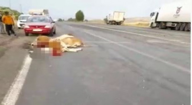 Ağrı’nın Eleşkirt ilçesinde tır büyükbaş hayvan sürüsüne çarpması sonucu 10 büyükbaş hayvan telef oldu.