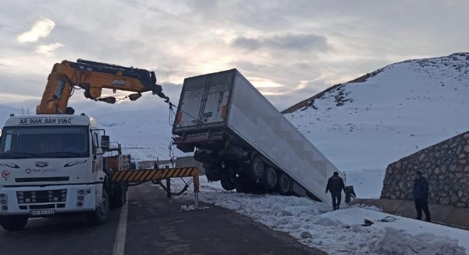 Bingöl’ün Karlıova ilçesinde, tır yoldan çıkıp şarampole indi, kazada sürücü yaralandı.
