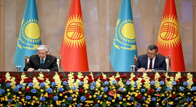 Kırgızistan’ın başkenti Bişkek’e dün gelen ve havalimanında konser programıyla karşılanan Kazakistan Cumhurbaşkanı Kasım Cömert Tokayev, bugünkü Kırgızistan temaslarına başladı. Cumhurbaşkanı Tokayev, Kırgızistan Cumhurbaşkanı Sadr Caparov Intımak-Ordo Cumhurbaşkanlığı Sarayı’nda düzenlenen resmi törenle tarafından karşılandı. İki ülke milli marşlarının çalındığı törende Cumhurbaşkanı Tokayev’in karşılama kıtasını selamlamasının ardından ikili görüşmeye geçildi. Görüşmede Kırgızistan ve Kazakistan arasındaki ikili gündemin güncel konuları ve işbirliği geliştirme perspektifleri ele alındı. Cumhurbaşkanı Caparov, yaptığı konuşmada Kırgız ve Kazak halklarının tarihinin derin kökleri olduğunu belirterek, "İlişkilerimiz, büyük atalarımız Toktogul, Abay, Cengiz ve Muhtar tarafından belirlenen yolla birbirine bağlıdır. Tarihimizin bize bıraktığı mirası paslanmasına veya tozlanmasına izin vermeden gelecek nesillere layıkıyla aktarmak bizim en önemli görevimizdir" ifadelerini kullandı.