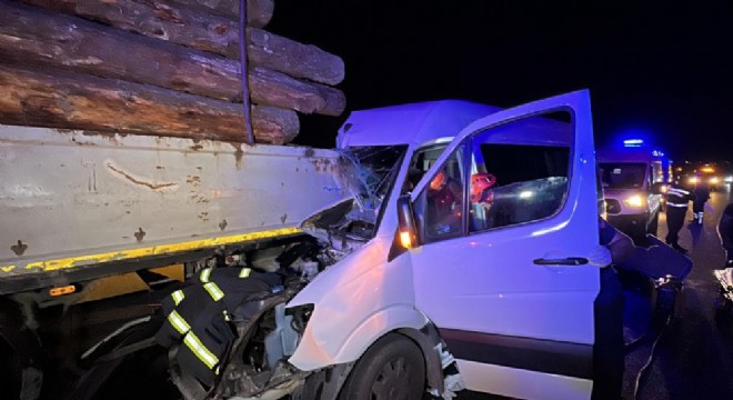 Tomruk yüklü tıra minibüs çarptı: 1 ölü, 20 yaralı