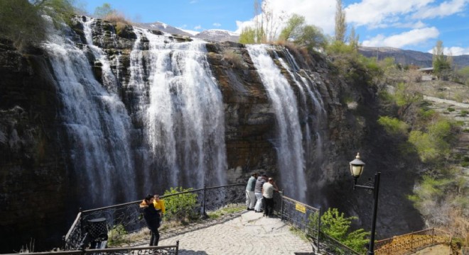 Erzurum'un doğa harikalarından Tortum Şelalesi, baharın gelmesi ve karların erimesiyle birlikte adeta görsel bir şölene dönüştü.