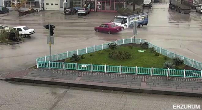 Erzurum’un Yakutiye ilçesi Sanayi semtinde meydana gelen trafik kazasında, ara yoldan çıkan kamyonetle ana yolda hızla seyir halindeki otomobil çarpıştı. Çarpışmanın etkisiyle direksiyon hâkimiyeti kaybolan otomobil park halindeki iki araca çarparak durabildi. Kazada otomobil sürücüsü hafif şekilde yaralandı.