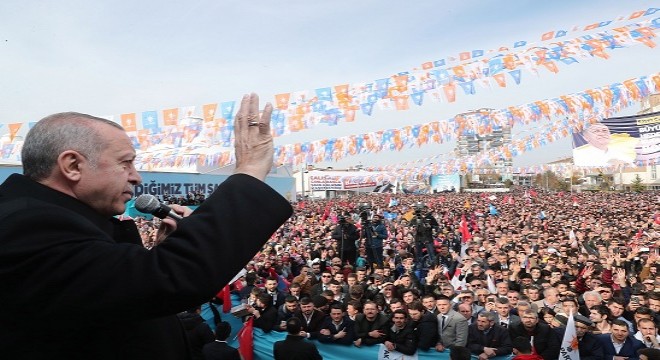 Cumhurbaşkanı Erdoğan ekonomiye güçlendirdiklerini ifade ederek, “Her alanda potansiyelimize güvenerek attığımız adımlar ile ekonomimizi güçlendirdik. Oyunları bozara, karanlık planları bozarak geleceğimizi aydınlattık. Bize bunun için düşman oldular. İnsanlarımıza güven aşıladığımız, devletimizi ayağa kaldırdığımız için bize düşman oldular. Zalimlere sessiz kalmadığımız, diline, dinine, rengine bakmadan mazluma sahip çıktığımız için bize düşman oldular. Türkiye'yi eskilerin deyimiyile fetret devrinden, fasl ı hazandan çıkardığımız için bize düşman oldular. Medeniyetimiz, tarihimize sahip çıkarak asırlardır bize dayanan kalıpları yıkarak çıktığımız için bize düşman oldular. Esir alanlara eyvallah etmeyip kendi hedeflerimize yöneldiğimiz için bize kinlendiler. Bundan asla ve asla pişman değiliz. Tam tersine maruz kaldığımız bu düşmanlıkları beraat belgemiz olarak görüyorum. AK Parti ve bana bu tür gerekçeler ile saldıranların hedefi Türkiyedir. Beka mücadelesi olarak görüyorum bu mücadeleyi. 2023 hedeflerimize sıkı sıkıya sahip çıkıyoruz” şeklinde konuştu.