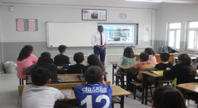 Atatürk Üniversitesinde okuyan Filistin, Suriye, Gine ve Bangladeş'ten gelen uluslararası öğrenciler ülkelerini Yahya Kemal Ortaokulunda okuyan ortaokul öğrencilerine tanıttılar.