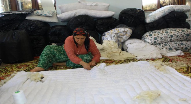 Doğu Anadolu Bölgesi illerinde unutulmaya yüz tutmuş yorgancılık, kadınlar tarafından kurulan yün fabrikasında işlenerek evlerin ve günlük yaşamın vazgeçilmezleri arasında yer alan yorgan, yastık, minder ve yer yatağına dönüştürülüyor.