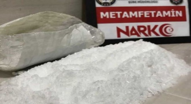 Erzincan İl Emniyet Müdürlüğüne bağlı Narkotik Suçlarla Mücadele Şube Müdürlüğü ile KOM Şube Müdürlüğü görevlilerince uyuşturucu madde kullanımının ve ticaretinin önlenmesine yönelik yürütülen çalışmalar kapsamında; Erzincan - Erzurum karayolu üzerindeki Akyazı mevkiinde risk analizine dayalı yapılan yol kontrolünde bir araç durduruldu. Ekipler araç içerisinde bulunan Ö.B. (33) ve A.R.K (30) isimli şahıslardan şüphelendi. Ö.B. isimli şahsın çantasında yapılan aramada 1 kilo 44 gram metamfetamin maddesi ele geçirildi.