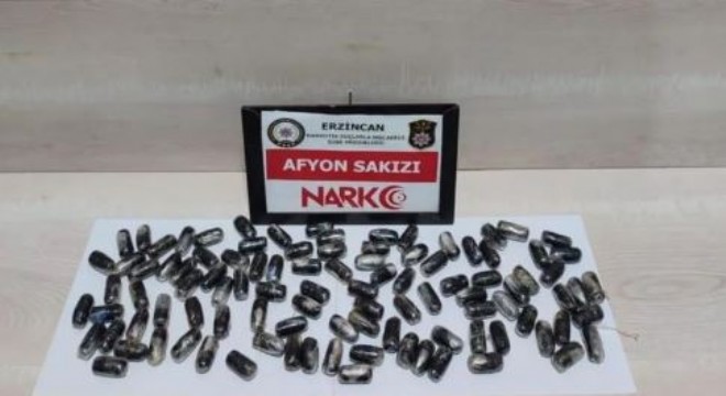 Erzincan’da yol uygulamasında yakalanan ve midesinde Afyon sakızı taşıdığı belirlenen İran uyruklu bir kişi tutuklandı.