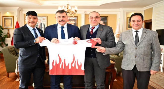 Vali Çiftçi'yi Erzurum'da düzenlenen sportif faaliyetler hakkında bilgilendiren Baş Antrenör Sönmez ve beraberindeki heyet, günün anısına Vali Çiftçi’ye Milli Takım forması hediye etti.