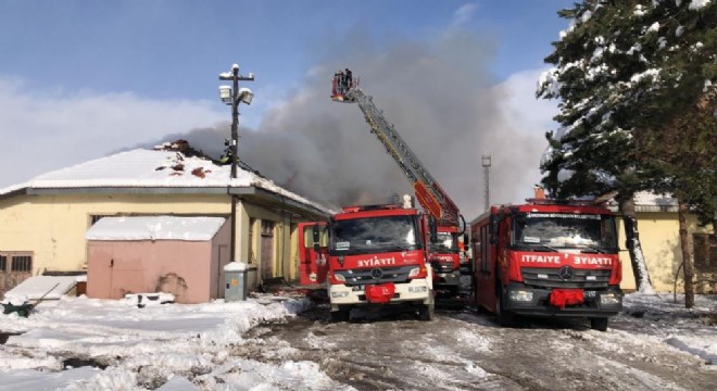 Erzurum’da Devlet Demiryollarına ait deponun çatısında çıkan yangın kontrol ...