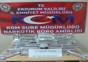 Edinilen bilgiye göre, Kaçakçılık ve Organize Suçlarla Mücadele Şube Müdürlüğü ekiplerinin il genelinde uyuşturucu madde kullanımı ve ticaretinin önlenmesine yönelik yaptıkları yol uygulamasında Aşkale Yolu üzerindeki şüpheli bir otomobil durduruldu. Araçta yapılan ilk aramada herhangi bir suç unsuruna rastlanmazken, araç sürücüsü M.S.K.’nın şüpheli tavrı dikkat çekti. Bunun üzerine otomobilde detayla arama yapıldı. Detaylı arama sırasında aracın yakıt deposunda farklılık gözlemlendiğinden içi incelenmek üzere söküldü. Yakıt deposu içerisinde alüminyum folyo ve jelatinlerle içerisine benzin girmeyecek şekilde profesyonel şekilde kapatılmış 40 ayrı paket bulundu. Bahse konu maddelerin depoya konma amacının ise depo içerisindeki benzinin keskin kokusundan faydalanarak narkotik madde detektör köpeklerinin koku algılarını yanıltıp, uyuşturucu maddelerin dedektör köpekler tarafından bulunmasını zorlaştırmak olduğu tespit edildi. Depo içerisinden çıkartılan 40 ayrı paketin 39 tanesinin içerisinde 21 kilo 766 gram eroin, 1 tanesinin içerisinde ise 427 gram Afyon sakızı ele geçirildi. Şüpheli M.S.K., “uyuşturucu madde ticareti yapmak ve nakletmek” suçundan çıkarıldığı adli mercilerce tutuklanarak cezaevine gönderildi.