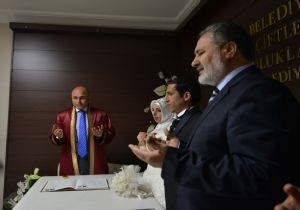 Ali Korkut'un nikahını kıydığı Esra Ataş - Kadir Turan, Songül Doğan - Yunus Göçgen, Selin Öktem - Ahmet Eser Turgut çiftlerinin şahitliklerini Yakutiye Belediye Başkan Yardımcısı Ferhat Mergan, Aile ve Sosyal Politikalar İl Müdürü Abdullah Yurt, İl Müftüsü Hasan Çınar yaptılar. Nikah törenlerinin tamamlanmasının ardından İl Müftüsü Hasan Çınar, Soma şehitleri ile çiftlerin nikahları için dua okudu. Ali Korkut, her evlilik cüzdanını gelinlere verirken, erkeklere yarımlık hediye etti. Ardından da eşlerin şiddetten uzak, birbirlerini tamamlayan bir anlayışla mutlu yuvalar kurup, hayırlı evlatlar yetiştirmesi temennisinde bulundu. Yine çiftlere Yakutiye Belediyesi tarafından bastırılan ve her nikah kıyan çifte verilen evlilik ile ilgili kitap hediye edildi.