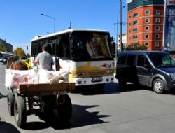 ERZURUM (İHA) - Erzurum’da ana arterde ters şeritten giden at arabası trafikte tehlike saçtı. Erzurum'da ana arterler de at arabalarının trafiğe çıkmasına yasak getirilmesine rağmen çoğu at arabası sahibi yasağa uymuyor. Trafiği de tehlikeye düşüren at arabalarına sürücüler de tepki gösteriyor.