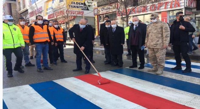 Protokol tarafından yaya geçitleri kırmızıya boyandıktan sonra trafikte durdurulan araç sürücülerine bilgi verilerek broşür dağıtıldı.