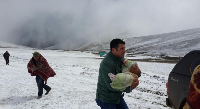Ardahan'ın Damal ilçesi Arapyurdu Köyü yaylasında kar yağışı sonrası mahsur kalan köylüler kurtarıldı.