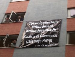 //HİZMET BİNASINA TEKEL İŞÇİLERİNE DESTEK PANKARTI ASILDI…