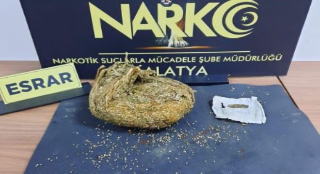 Edinilen bilgiye göre, Malatya Emniyet Müdürlüğü Narkotik Suçlarla Mücadele Şube Müdürlüğü ile Kaçakçılık ve Organize Suçlarla Mücadele Şube Müdürlüğü tarafından koordineli olarak yapılan çalışma sonucunda, Siirt-Samsun seferini yapan otobüs, Elâzığ yolu 2 no’lu uygulama noktasında durduruldu. Otobüste yapılan aramada, 1 şahıstan 1071 gram Kubar Esrar maddesi ele geçirildi. Konu ile ilgili olarak, Y.Ç isimli şahıs yakalanarak TCK 188 suçundan işlem yapıldı.