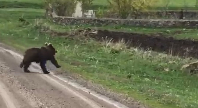 Kars’ın Sarıkamış ilçesinde yolunu kaybeden boz ayı cep telefonuyla görüntülendi.
