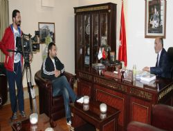 Başkan Yücelik TV8 ekibine verdiği röportajın ardından Havuzbaşı’nda konuşlanan MNG Kargo TIR’ını ziyaret ederek yetkililerden bilgi aldı. Haziran ayında sona erecek proje kapsamında 26 ilin iş dünyası temsilcileriyle buluşacak olan MNG Kargo TIR’ı 82 günlük etkinliği süresince 5.950 kilometre yol katedecek.