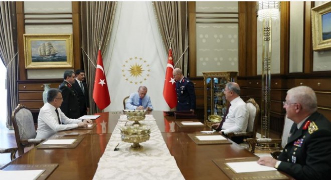 Cumhurbaşkanı Recep Tayyip Erdoğan’ın başkanlığında toplanan Yüksek Askeri Şura toplantısı sona erdi. Bugün Cumhurbaşkanlığı Külliyesi’nde Cumhurbaşkanı Erdoğan Başkanlığında yapılan 2021 yılı Yüksek Askeri Şura olağan toplantısında, Türk Silahlı Kuvvetlerinde görevli general/amiral ve albaylardan; bir üst rütbeye yükseltilecekler, görev süresi uzatılacaklar, kadrosuzluktan emekliye sevk edileceklerin durumları görüşülerek, Cumhurbaşkanı Recep Tayyip Erdoğan’ın onayı ile karara bağlandı. Buna göre, 30 Ağustos 2021 tarihinden geçerli olmak üzere; 17 general ve amiral bir üst rütbeye, 56 albay ise general ve amiralliğe yükseltildi. Ayrıca, 44 general ve amiralin görev süreleri bir yıl, 320 albayın görev süreleri ise iki yıl süre ile uzatılırken 1 general yaş haddi nedeniyle 01 Eylül 2021 tarihinden, 29 general ve amiral kadrosuzluk nedeniyle 30 Ağustos 2021 tarihinden geçerli olarak emekliye sevk edildi.
