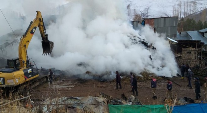İspir ilçesine bağlı Zeyrek Mahallesi'nde çıkan yangında 3 ev ve 6 ahır kül oldu.